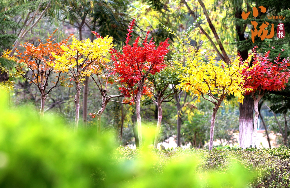 紅、黃、橙的顏色在秋風(fēng)中靜靜綻放,溫暖而又柔和,形成了一片片絢麗的色塊,把深秋裝扮得斑斕靚麗。