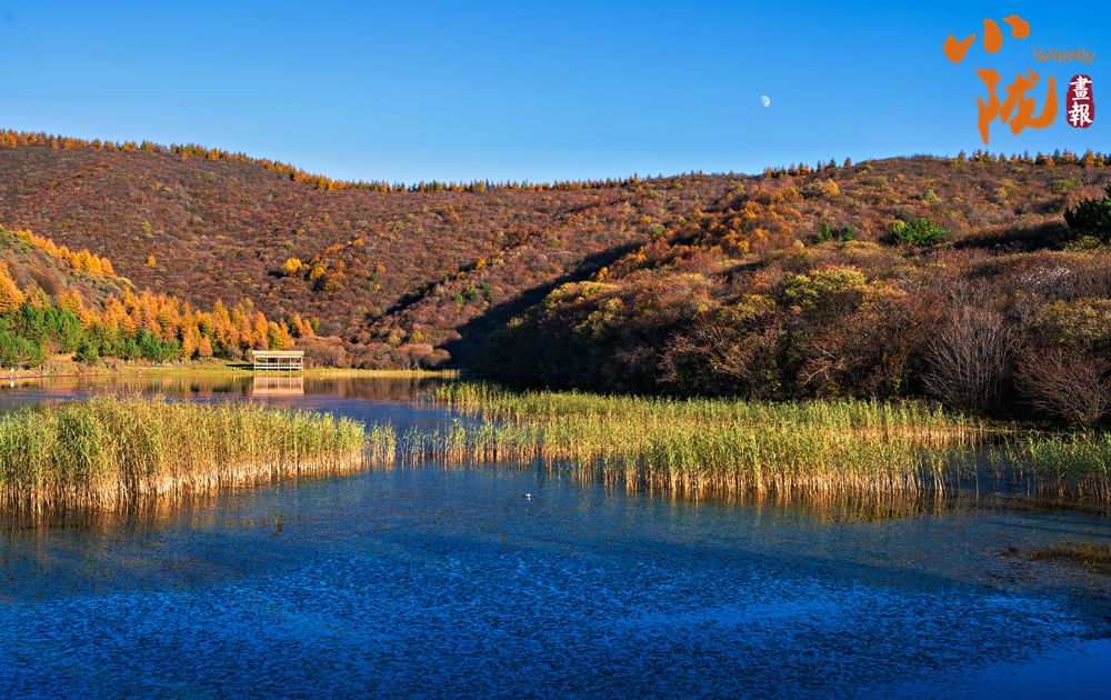 群山環(huán)抱里的朝那湫,水面開闊,清澈透明,周圍層林盡染,藍天、蘆葦?shù)褂霸诿鲀舻乃嫔?,恰似一幅絕妙的山水風景圖。