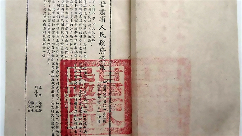1950年1月8日,鄧寶珊正式就任甘肅省人民政府主席和省長。他感到責(zé)任重大,也對甘肅的發(fā)展充滿了希望。他經(jīng)常到下面體察民情,足跡遍布全省的各個(gè)縣。在不能通車的偏遠(yuǎn)地方,就是步行幾小時(shí)也要走到下面的村縣。1952年3月2日,鄧寶珊主席一行從蘭州出發(fā),對武威和酒泉兩個(gè)專區(qū)展開視察,歷時(shí)一個(gè)多月,走訪了永登、古浪、山丹、張掖、敦煌等13個(gè)縣。山丹縣1950年劃歸武威專區(qū),1955年后復(fù)歸張掖專區(qū)。