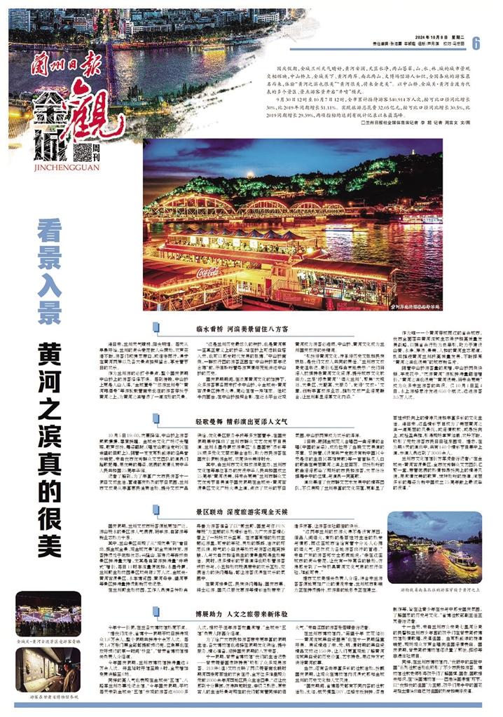 今年國(guó)慶假期,以中山橋、金城關(guān)·黃河古渡為代表的多個(gè)景區(qū)、景點(diǎn)游客量開(kāi)啟“井噴”模式。僅10月1日至3日,全市累計(jì)接待游客超220萬(wàn)人次,實(shí)現(xiàn)旅游消費(fèi)超12億元,兩項(xiàng)指標(biāo)均超歷史峰值。