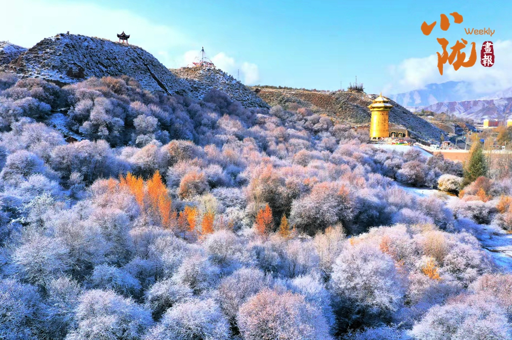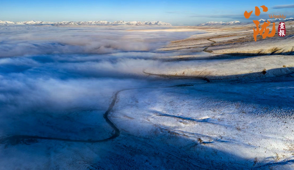 祁連山下,被譽(yù)為“空中草原”的康樂(lè)草原段披上了銀裝,皓然一色,如詩(shī)如畫。
