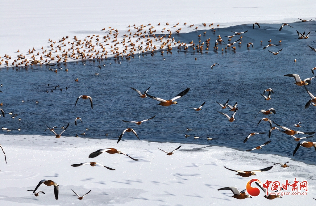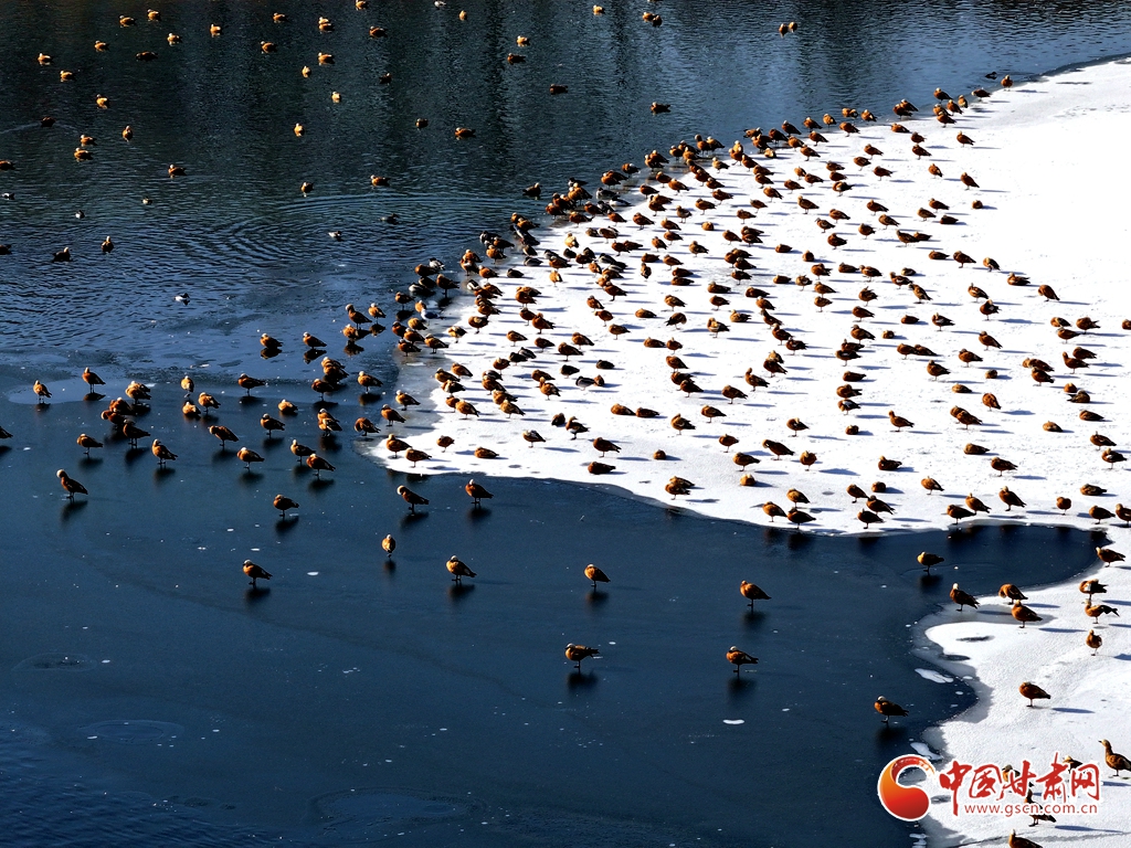 1月11日,甘肅省張掖國家濕地公園里,成群的赤麻鴨棲息覓食,成為濕地一道亮麗風景。