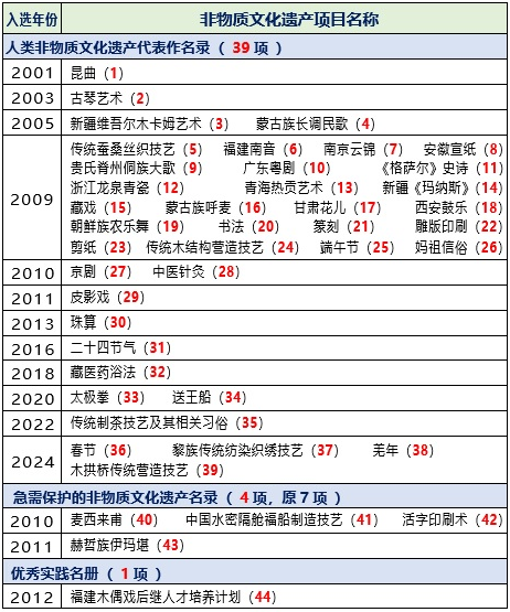 一、我國共有44個(gè)入選世界級(jí)的非遺項(xiàng)目,總數(shù)居世界第一