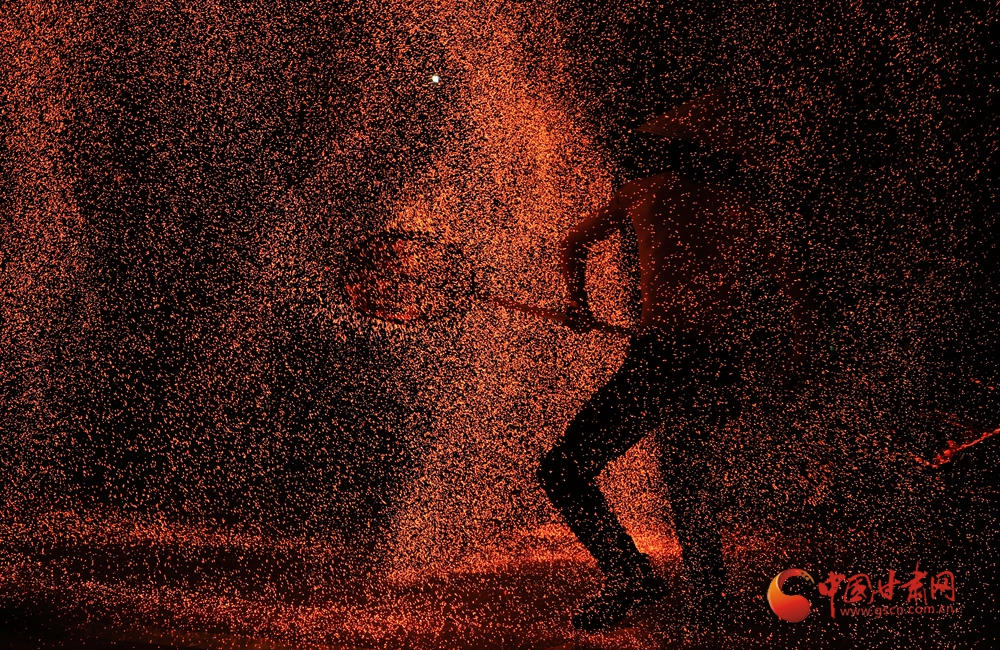 春節(jié)期間,在臨夏永靖劉家峽太極廣場上進(jìn)行的打鐵花和火壺表演吸引了不少觀眾,營造了濃濃的節(jié)日氛圍。