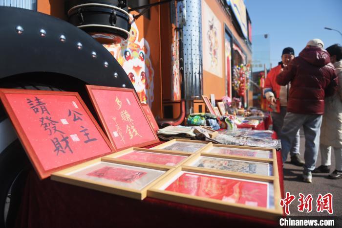2月8日,甘肅省蘭州市城關區(qū)“非遺年貨購物月”活動現(xiàn)場展出的敦煌剪紙文創(chuàng)產品。中新社記者 李亞龍 攝