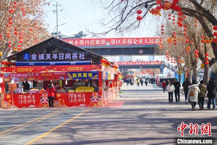 2月8日,甘肅省蘭州市城關區(qū)“非遺年貨購物月”活動現(xiàn)場,游人逛街。據(jù)悉,該活動是中國文化和旅游部非遺司組織開展的2025年“非遺好物 國潮煥新——四季非遺購物月”活動一季度的主題活動。通過豐富多樣的非遺促消費活動,發(fā)揮非遺在弘揚中華優(yōu)秀傳統(tǒng)文化、培育國貨“潮品”的積極作用?!≈行律缬浾?nbsp;李亞龍 攝