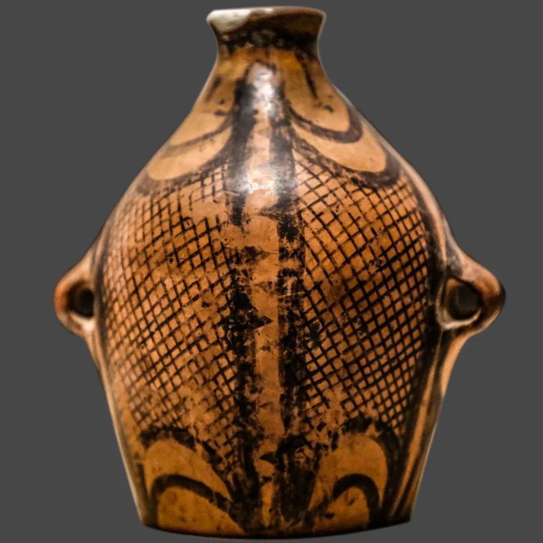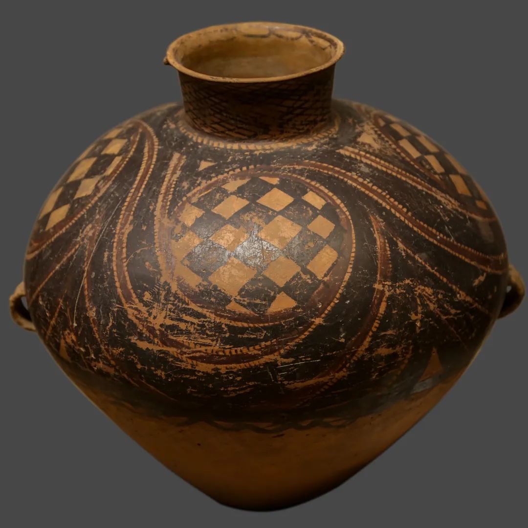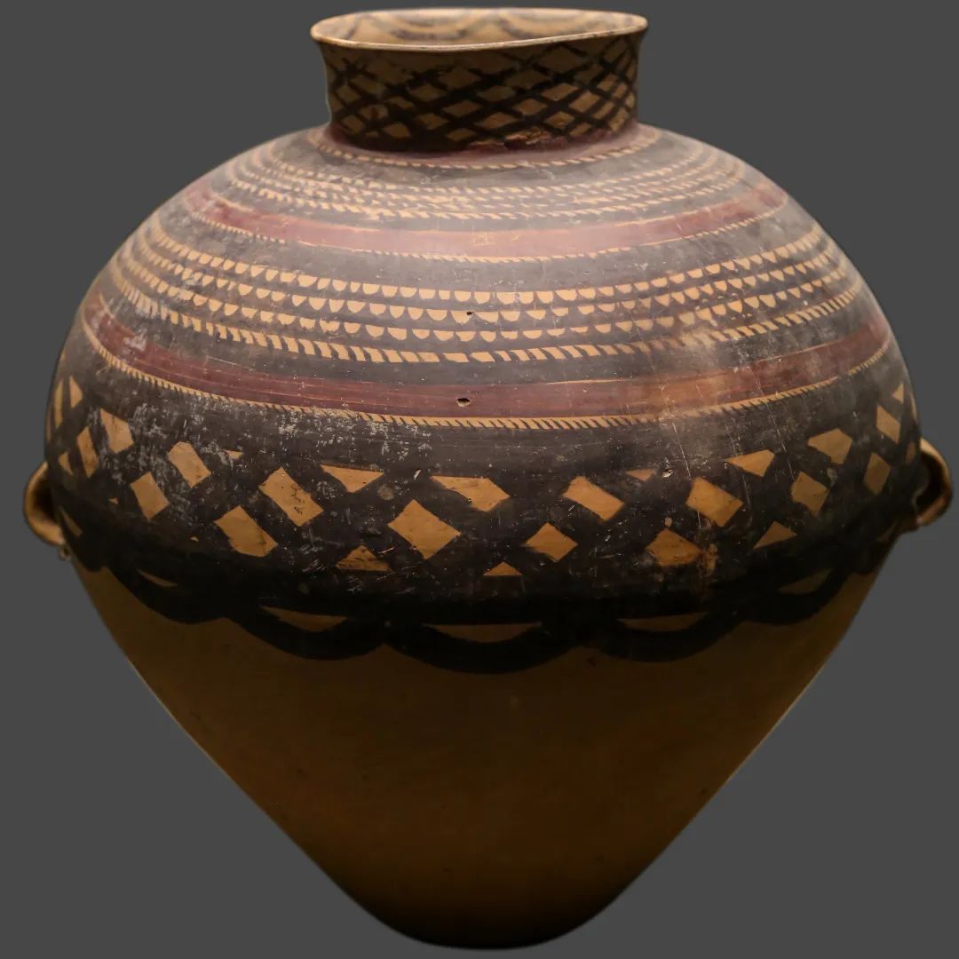 馬家窯文化如黃河上游的基因庫,約公元前3300年萌芽于甘肅定西臨洮,承仰韶文化西進之火種,以洮河為血脈、黃土為肌理,在旋轉(zhuǎn)的陶輪間淬煉出黑彩翻涌的史前藝術(shù)密碼,成為西北大地孕育新石器文明的第一縷熾熱胎動。