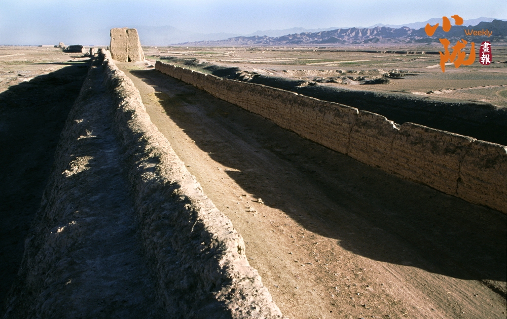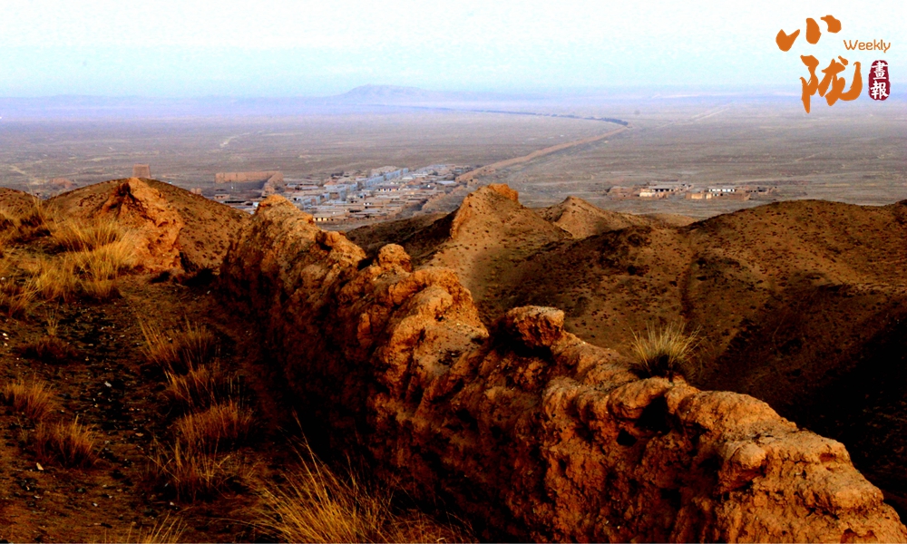 在黛藍色山脈的映襯下,漢明長城蜿蜒并行,高于地面的黃色城墻是明長城,而顏色稍深的壕溝是漢長城,兩條跨越千載的古長城最近處不過十余米,仿佛攜手講述著遠古的故事……它們也猶如兩位忠誠的衛(wèi)士,守護著這片古老的土地,也見證了絲綢之路的興衰變遷。