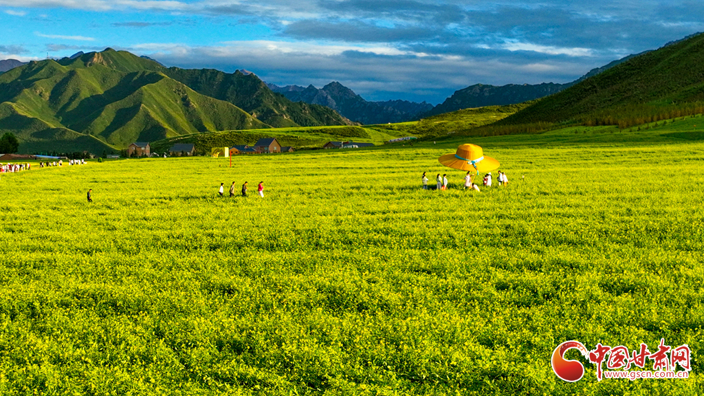 7月19日,張掖市民樂縣扁都口景區(qū)萬畝油菜花盛放。金黃的花海如巨毯鋪展,與草原綠野相接。微風(fēng)輕拂,花浪層層涌動,空氣中彌漫著淡淡清香。藍天白云映襯下,景致美不勝收,成為河西走廊一道別致風(fēng)景,吸引了眾多游客前來觀光。