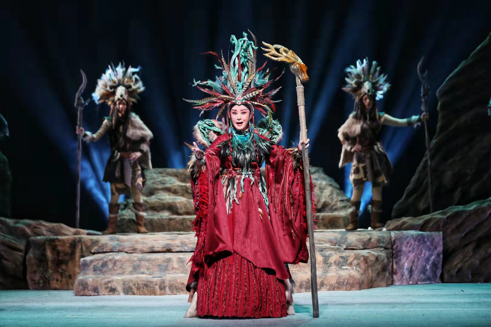 在兩個多小時的演出中,扮演“大禹”的邵炳德唱念做打俱佳,將一個人性化、頂天立地的大禹形象立于舞臺之上,三朵隴劇“梅花”雷通霞、佟紅梅、竇鳳霞,分別在劇中扮演山戎、大禹妻子涂嬌和禹母的角色,全體演員以精湛的表演,將大禹治水過程中天理與人性、親情與仇恨、生與死的抉擇演繹得淋漓盡致。