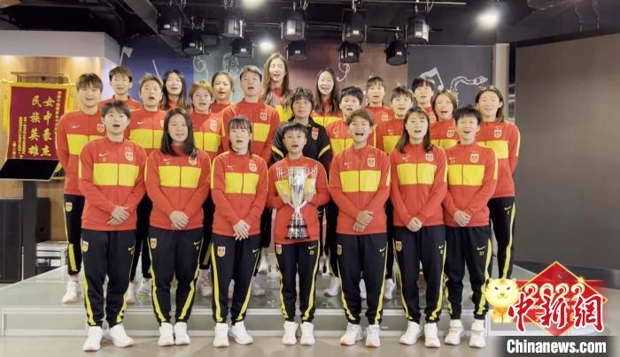 中國國家女子足球隊通過云連線方式與現(xiàn)場演員共唱一首《風(fēng)雨彩虹鏗鏘玫瑰》,中國女足永不言棄的拼搏精神將整場晚會的熱烈氛圍推向高潮。