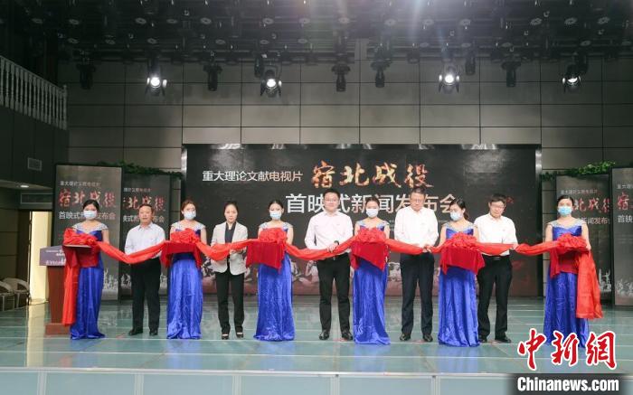 江蘇省宿遷市宿豫區(qū)電視臺(tái)分會(huì)場(chǎng)進(jìn)行《宿北戰(zhàn)役》首映剪彩儀式?!⒘帧z