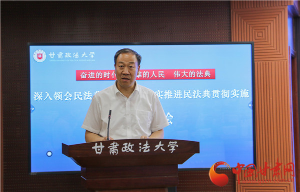 中國甘肅網(wǎng)7月9日訊 (本網(wǎng)記者 彭曉姣)7月8日,甘肅政法大學(xué)召開“深入領(lǐng)會民法典核心要義,切實推進民法典貫徹實施”理論研討會。研討會的主旨是深入貫徹落實習(xí)近平總書記關(guān)于“切實實施民法典”的重要講話精神,為甘肅省有效實施民法典、不斷完善民商事法律制度提供理論支撐。