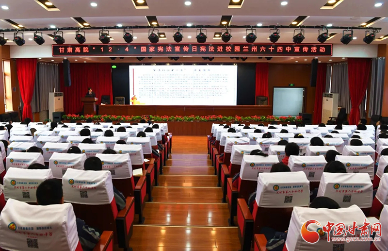 中國甘肅網(wǎng)12月4日訊(本網(wǎng)記者 李紅軍)12月4日是第七個“國家憲法日”。今天下午,甘肅省法院少年法庭的法官走進蘭州市第六十四中學(xué),開展以“深入學(xué)習(xí)宣傳習(xí)近平法治思想、大力弘揚憲法精神”為主題的憲法進校園宣傳活動。該校300余名師生代表在學(xué)術(shù)報告廳聆聽了宣講報告,兩名基層法院人民陪審員應(yīng)邀參加了活動。