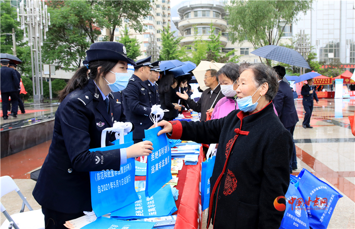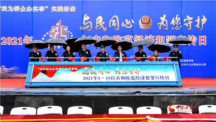 中國甘肅網(wǎng)5月15日訊(本網(wǎng)記者 宋芳科)5月15日,按照公安部統(tǒng)一部署,全省公安機關(guān)統(tǒng)一開展了“與民同心  為您守護”為主題的打擊和防范經(jīng)濟犯罪宣傳活動。省公安廳會同人民銀行蘭州中心支行、國家稅務(wù)總局甘肅省稅務(wù)局、甘肅省市場監(jiān)督管理局、甘肅銀保監(jiān)局、甘肅證監(jiān)局、甘肅省地方金融監(jiān)督管理局、蘭州市公安局、蘭州市公安局城關(guān)分局、銀聯(lián)、商業(yè)銀行、證券公司、保險公司等40余家單位,在全省主會場蘭州市金輪廣場開展集中宣傳咨詢活動。