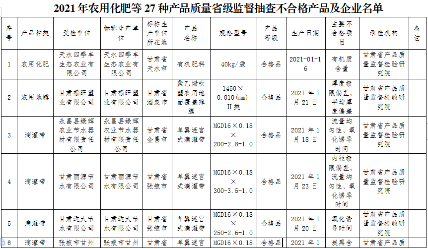 中國甘肅網(wǎng)8月12日訊(本網(wǎng)記者 沈文剛)據(jù)甘肅省市場監(jiān)督管理局通報,2021年上半年,對農用化肥等27種產品質量省級監(jiān)督抽查中,檢驗出26批次質量不合格產品。