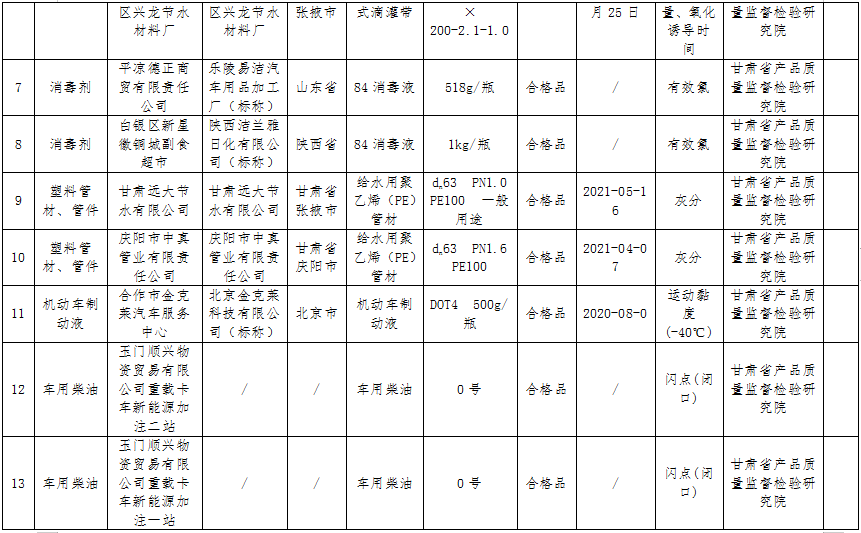 對抽檢發(fā)現(xiàn)的不合格產品,甘肅省市場監(jiān)管局已責成各市(州)市場監(jiān)管部門嚴格按照《產品質量法》《產品質量監(jiān)督抽查管理暫行辦法》等規(guī)定,認真做好后處理工作,并將不合格產品生產(經銷)企業(yè)后處理情況在規(guī)定時限內上報。
