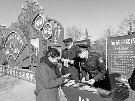 12月4日,平?jīng)霰O(jiān)獄組織民警在市人民廣場(chǎng)社區(qū)開展憲法宣傳進(jìn)社區(qū)活動(dòng),通過向市民發(fā)放憲法手冊(cè)和宣傳彩頁(yè)等方式,讓廣大市民深入認(rèn)識(shí)憲法、了解憲法。