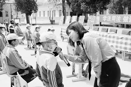 從派出所出來,肖永亮和王婭妮便匆匆吃了個(gè)午飯,又驅(qū)車趕往榆中縣青城鎮(zhèn)。13時(shí),肖永亮和王婭妮在青城中學(xué)開始準(zhǔn)備當(dāng)天下午“法治小講堂”的相關(guān)工作事宜。整理發(fā)放的普法資料、懸掛宣傳橫幅、向校長了解學(xué)校情況……每一件事情都在有序進(jìn)行。