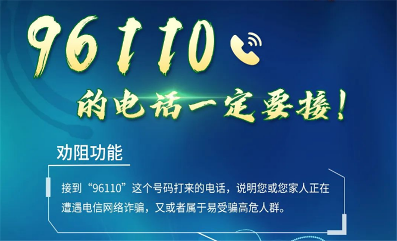 96110預警勸阻專線是反詐專用號碼,主要有以下功能: