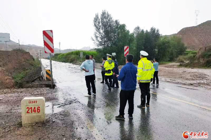 8月4日,永登縣公安局交警大隊河橋中隊接到縣局指揮中心強對流天氣預警信息后,提前趕往G341線易發(fā)山洪路段開展交通疏導,所在區(qū)域35人、15輛車安全撤離僅3分鐘后,G341線2174公里處發(fā)生路面坍塌,洪水漫過堤壩,道路被嚴重沖毀。