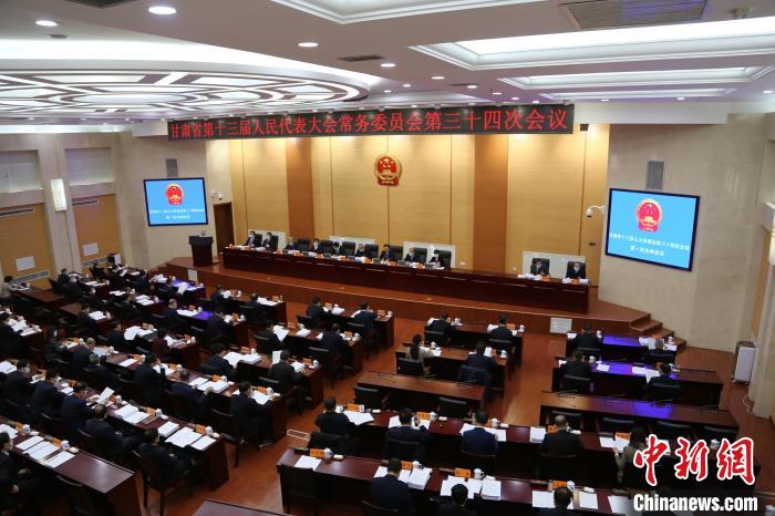 11月22至25日,甘肅省第十三屆人大常委會第三十四次會議在蘭州召開。圖為會議開幕式現(xiàn)場?!■亩盼蹶俊z