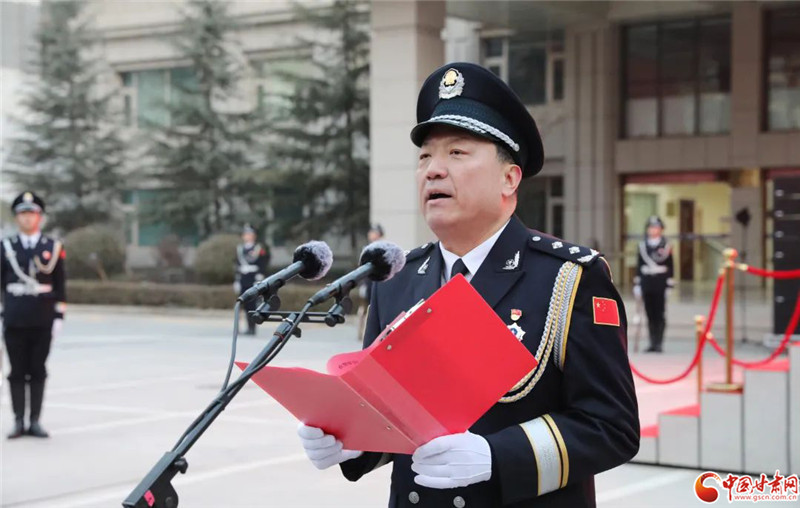 中國(guó)甘肅網(wǎng)1月10日訊(本網(wǎng)記者 程健)1月10日,蘭州市公安局舉行升警旗儀式,熱烈慶祝第三個(gè)中國(guó)人民警察節(jié),進(jìn)一步激勵(lì)全警深入學(xué)習(xí)宣傳貫徹黨的二十大精神,牢記初心使命、堅(jiān)定從警信念,匯聚向高而攀、向新而生、向遠(yuǎn)而行的磅礴力量,推動(dòng)新時(shí)代蘭州公安高質(zhì)量發(fā)展,為全面建設(shè)社會(huì)主義現(xiàn)代化國(guó)家、全面推進(jìn)中華民族偉大復(fù)興保駕護(hù)航。省公安廳副廳長(zhǎng)、蘭州市副市長(zhǎng)、市公安局黨委書記、局長(zhǎng)王立朝出席并講話。