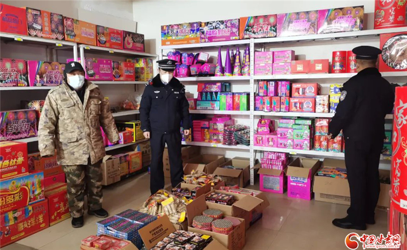 鎮(zhèn)原縣公安局城關(guān)派出所民警對(duì)轄區(qū)煙花爆竹銷售點(diǎn)、儲(chǔ)存庫(kù)區(qū)開(kāi)展安全檢查