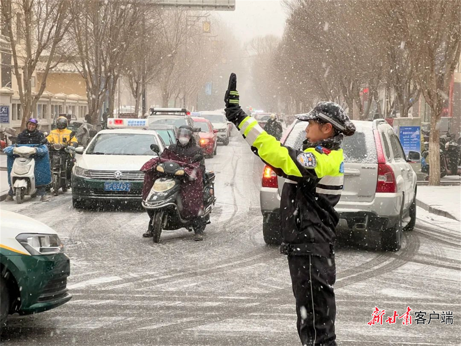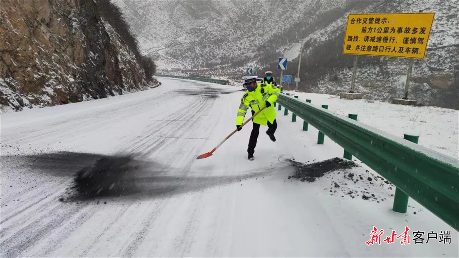 新甘肅客戶(hù)端訊(新甘肅·每日甘肅網(wǎng)記者 萬(wàn)及敏)2月8日上午,甘肅多地出現(xiàn)降雪天氣,部分道路出現(xiàn)積雪結(jié)冰現(xiàn)象。為最大限度保障群眾出行安全,預(yù)防和減少道路交通事故的發(fā)生,全省公安機(jī)關(guān)1.2萬(wàn)公安民輔警奮戰(zhàn)一線,加大重點(diǎn)路段巡邏管控力度,采取預(yù)警提示、除冰、引導(dǎo)車(chē)輛減速慢行、封閉道路、幫助群眾推車(chē)等措施,嚴(yán)防交通事故發(fā)生,為群眾的平安出行保駕護(hù)航。