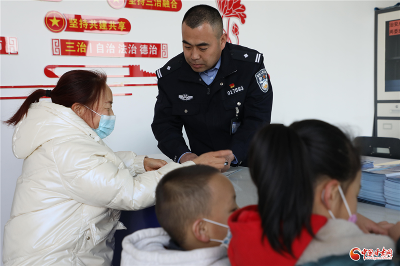 蘭州新區(qū)公安局秦川派出所民警向群眾宣傳智慧安防