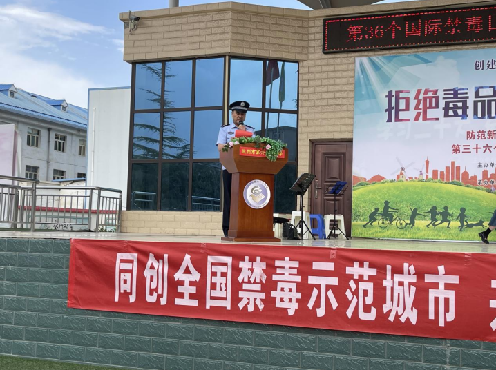 活動(dòng)以化工街派出所教導(dǎo)張華鵬向廣大師生、參與活動(dòng)人員領(lǐng)誓拉開(kāi)帷幕,宣言鏗鏘有力,承諾擲地有聲,一句句誓言,道出了大家對(duì)拒絕毒品、遠(yuǎn)離毒品的決心。西柳溝街道黨工委副書(shū)記袁得琴講話(huà)中對(duì)全體到場(chǎng)人員作出倡議,希望大家從自身做起積極加入到全社會(huì)禁毒宣傳志愿者隊(duì)伍中,營(yíng)造“禁毒斗陣、人人參與”的良好社會(huì)氛圍。