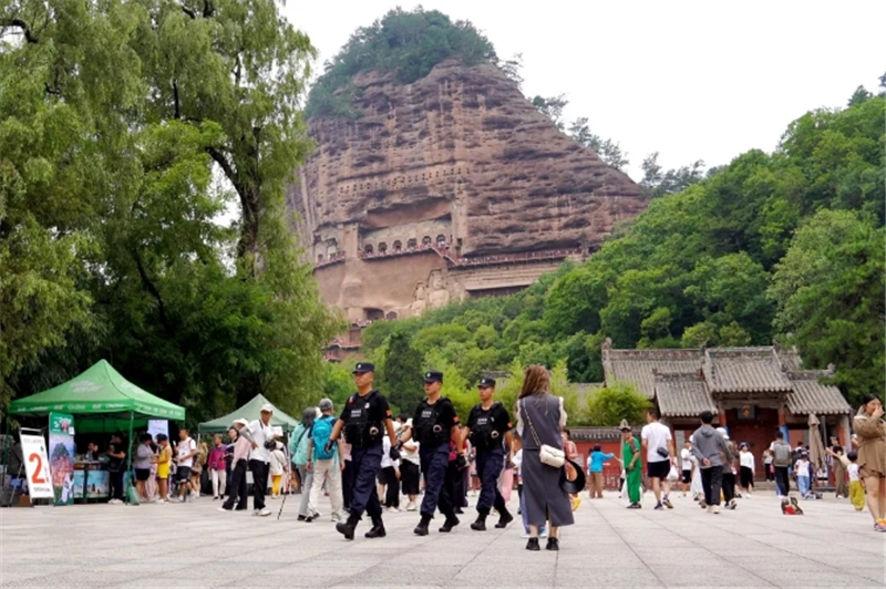 在天水麥積山大景區(qū),旅游人氣爆棚依舊,隨處可見的旅游警察來回穿行在景區(qū)內,守護著美景勝地的平安。