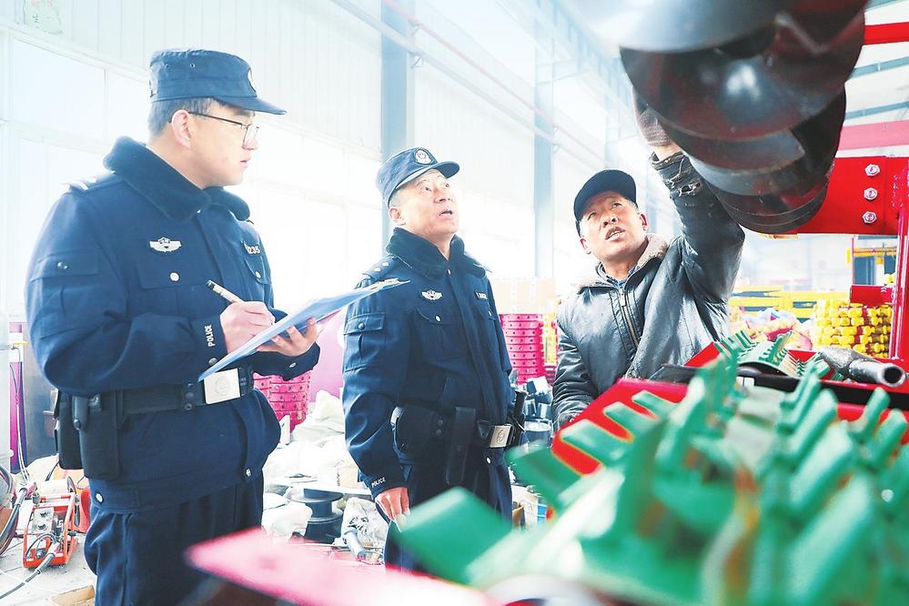 民警檢查農(nóng)機(jī)安全情況。2月20日,定西市公安局安定分局民輔警深入農(nóng)機(jī)制造、銷售網(wǎng)點(diǎn),開(kāi)展農(nóng)機(jī)安全隱患排查治理工作,助力春耕生產(chǎn)。新甘肅·甘肅法治報(bào)通訊員楊永剛攝