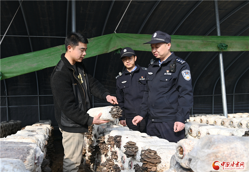 在西固區(qū)新城鎮(zhèn)青石金庭生態(tài)產(chǎn)業(yè)園,西固分局新城派出所民警宋振浩正在和蘑菇種植戶郭先生拉家常,詳細(xì)了解生產(chǎn)經(jīng)營情況,詢問實際困難和需求。