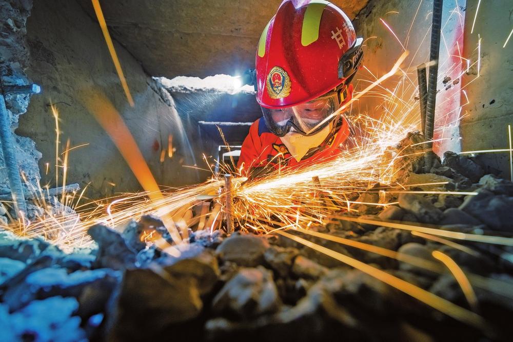 眼看就要取得勝利,余震突然來襲,救援現(xiàn)場可能出現(xiàn)二次坍塌的風(fēng)險(xiǎn)。救援人員迅速組織人員撤離,在確?,F(xiàn)場環(huán)境安全后對(duì)風(fēng)險(xiǎn)點(diǎn)進(jìn)行支撐加固處理,再次展開救援。