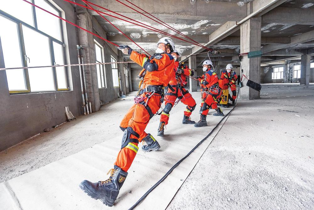 演練現(xiàn)場設(shè)置在民樂縣一處廢棄廠區(qū),精心搭建的模擬廢墟區(qū)真實(shí)還原了地震后的慘烈場景:斷裂的預(yù)制板下壓著被困者,傾倒的鋼架阻斷逃生路徑,熊熊燃燒的化工廠冒出濃煙……12個(gè)高難度救援科目輪番上演,每一處細(xì)節(jié)都直擊地震救援的核心挑戰(zhàn)。