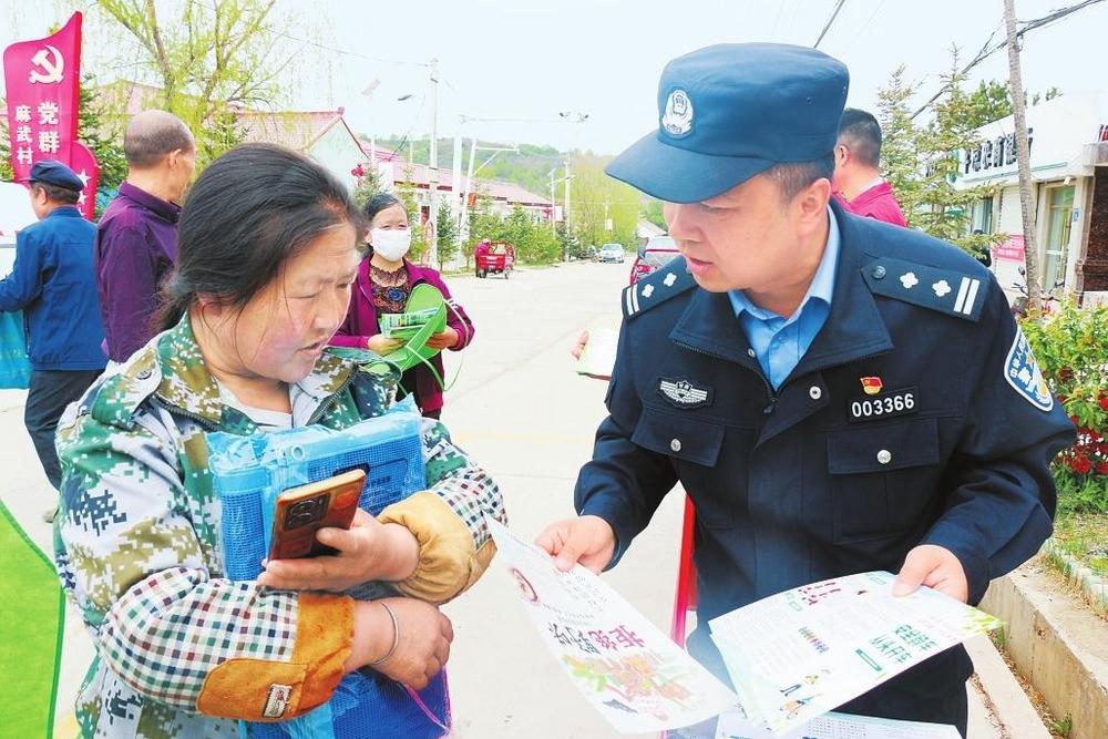 民警向群眾發(fā)放宣傳資料。5月12日,省公安廳森林公安局太統(tǒng)崆峒山分局組織開展防災(zāi)減災(zāi)日宣傳活動。 新甘肅·甘肅法治報通訊員薛瑞攝
