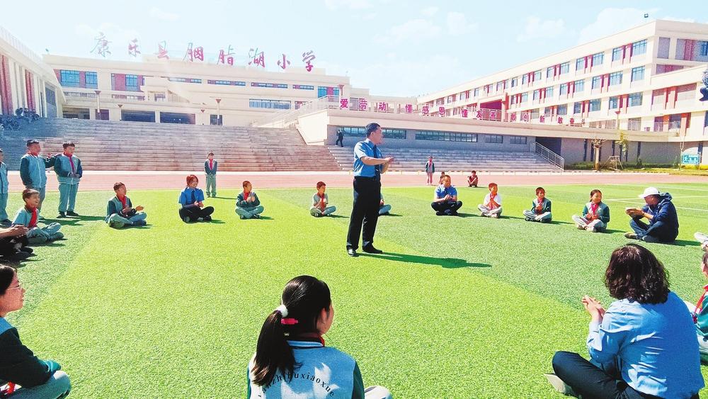 干警和孩子們游戲互動。近日,康樂縣檢察院組織干警走進(jìn)康樂縣胭脂湖小學(xué),開展法治進(jìn)校園宣講活動,為未成年人健康成長構(gòu)筑堅實司法屏障,用心用情守護(hù)“少年的你”。 新甘肅·甘肅法治報記者陳孝志攝