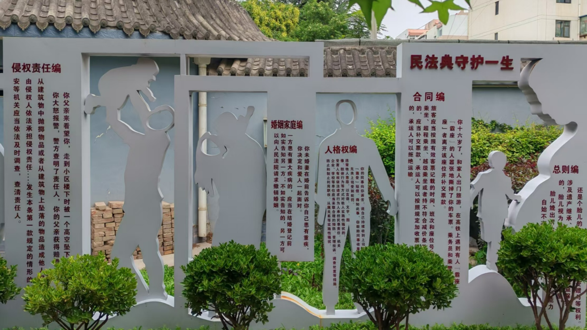 這座占地1900平方米的法治主題公園,將《中華人民共和國(guó)網(wǎng)絡(luò)安全法》《中華人民共和國(guó)數(shù)據(jù)安全法》融入游園場(chǎng)景:連接WiFi需答法治題,200余個(gè)垃圾桶印著“守法更有序”標(biāo)語,藍(lán)色普法區(qū)掃碼可看法律發(fā)展歷程,“逛公園”與“學(xué)法律”自然融合。