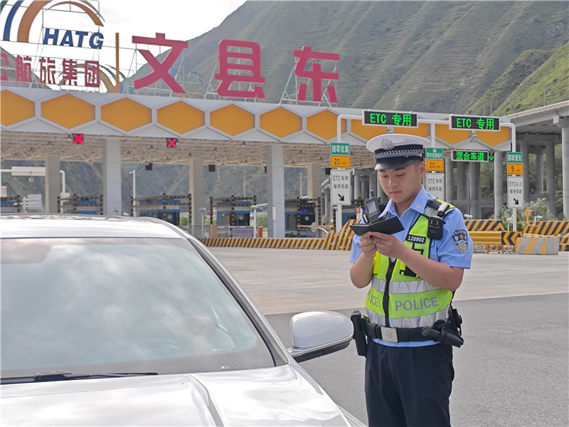 8月21日下午,車輛駛出高樓山隧道1公里后在文縣東收費(fèi)站下高速,隴南市公安局交通管理支隊(duì)高速公路八大隊(duì)的民警任濤和同事們正在開展定點(diǎn)勤務(wù)。