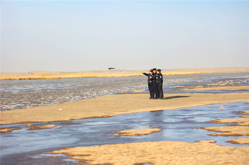 ▲金塔縣公安局城關(guān)派出所民輔警深入轄區(qū)生態(tài)保護(hù)區(qū)開展車巡、步巡、無人機(jī)巡,構(gòu)建起全域覆蓋、空地聯(lián)動、精準(zhǔn)高效的生態(tài)安全防控體系,為織密生態(tài)保護(hù)網(wǎng)保駕護(hù)航。(葛萬譽(yù) 攝)