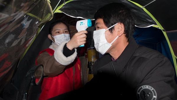 自疫情防控工作開展以來,湖北省咸寧市咸安區(qū)紀(jì)委監(jiān)委90后干部黃煬,始終堅(jiān)守防疫一線,參與卡點(diǎn)值守、入戶摸排、生活物資代購等工作,耐心安撫居民情緒,為他們進(jìn)行心理疏導(dǎo)。圖為黃煬為夜歸的居民測量體溫。(湖北省咸寧市咸安區(qū)紀(jì)委監(jiān)委 魯一凡 攝)