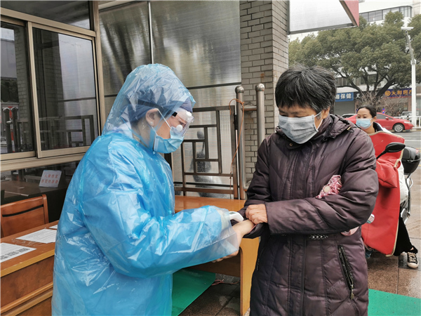 江蘇省常熟市第五人民醫(yī)院監(jiān)察室主任林潔已離開臨床崗位很多年,疫情發(fā)生后她選擇在一線,在發(fā)熱病人預(yù)檢分診處,守好第一道關(guān)口。(江蘇省常熟市紀(jì)委監(jiān)委 顧薇 攝)