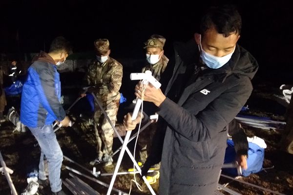 4月1日當(dāng)晚,長(zhǎng)須貢瑪鄉(xiāng)紀(jì)委干部跟隨救援隊(duì)深入震中江瑪村等地開展災(zāi)情摸排和群眾救助工作,確保各類救災(zāi)物資及時(shí)發(fā)放到位。圖為長(zhǎng)須貢瑪鄉(xiāng)紀(jì)檢監(jiān)察干部在受災(zāi)群眾臨時(shí)安置點(diǎn)參與救災(zāi)帳篷搭建工作。