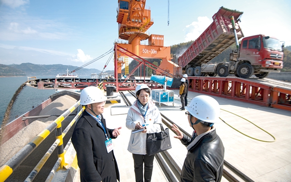 重慶市萬州區(qū)紀委監(jiān)委圍繞推動成渝地區(qū)雙城經濟圈建設跟進監(jiān)督,保障重點工程順利推進、廉潔高效。圖為萬州區(qū)紀檢監(jiān)察干部深入重點水運項目新田港現(xiàn)場了解情況。 攝影/冉孟軍(萬州區(qū)紀委監(jiān)委干部)