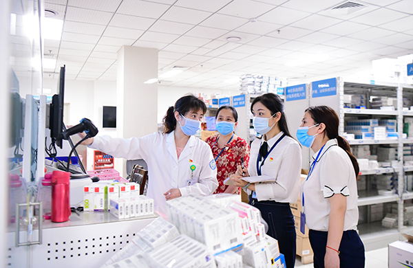 重慶市璧山區(qū)紀(jì)委監(jiān)委將整治醫(yī)藥購銷領(lǐng)域腐敗作為“我為群眾辦實事”實踐活動的一項重要內(nèi)容。圖為7月5日,駐區(qū)衛(wèi)生健康委紀(jì)檢監(jiān)察組在區(qū)人民醫(yī)院藥房抽查藥品采購、管理等情況。 胡悅建 攝
