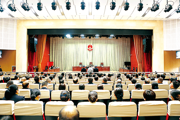 圖為4月21日,蘭州市中級(jí)人民法院開庭審理柳豐德受賄、行賄案。 (蘭州市中級(jí)人民法院供圖)
