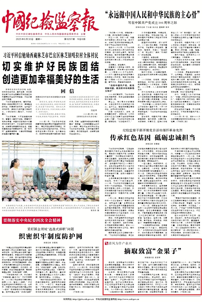 《中國紀(jì)檢監(jiān)察報》2025年6月30日 第1版