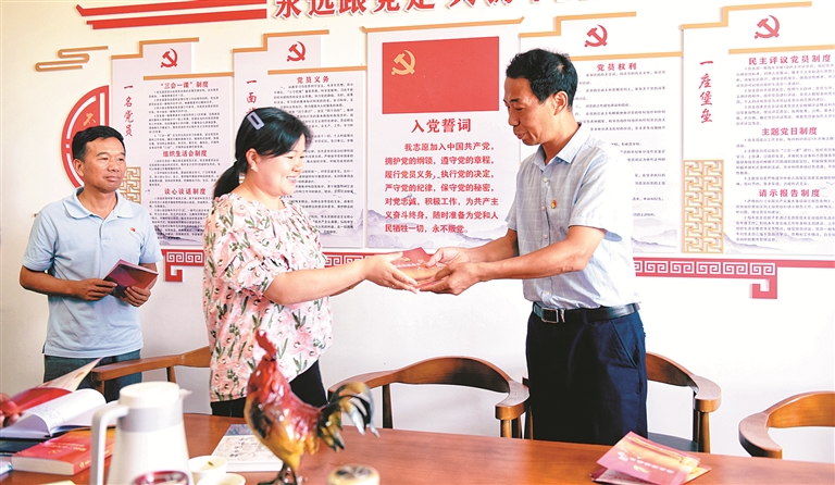 近日,安徽省宣城市宣州區(qū)紀(jì)委監(jiān)委第一黨支部來(lái)到“1+1”黨建共建村級(jí)黨支部,為村級(jí)紀(jì)檢委員送上“政治生日”賀卡。姚駿 攝
