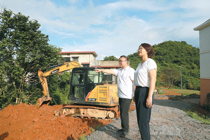 圖為湖南省資興市紀檢監(jiān)察干部在白廊鎮(zhèn)白廊村,對滑坡地質(zhì)災害隱患點的治理情況進行抽查。記者 劉遠航 攝